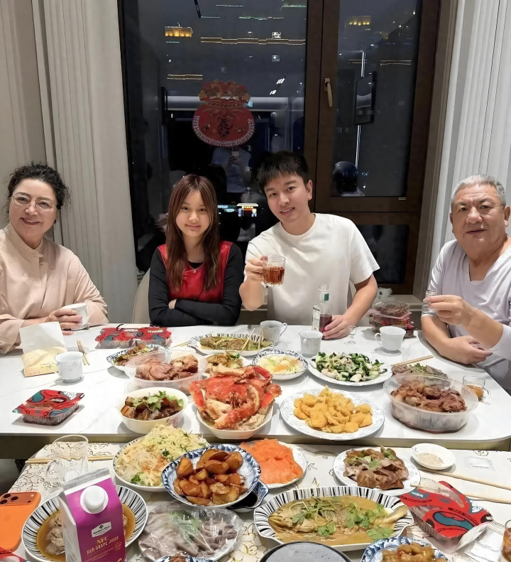 餐桌上,一谈谈好意思食丰富多采,君主蟹、炸肉段、鸡腿、牛肉……丰盛的菜肴不仅得志了味蕾,更承载着家东谈主间满满的爱意。贾乃亮和父母一同碰杯,对着镜头表露幸福的笑颜,那笑颜里,有对生存的感德,也有对家东谈主的帮忙。而甜馨则双手环抱,当然又收缩,仿佛在享受这清苦的相接时光。贾乃亮还贴心肠配文,祝愿群众新年稳固、万事如意,虽是马年祝愿,却也饱含着他对生存的好意思好守望。