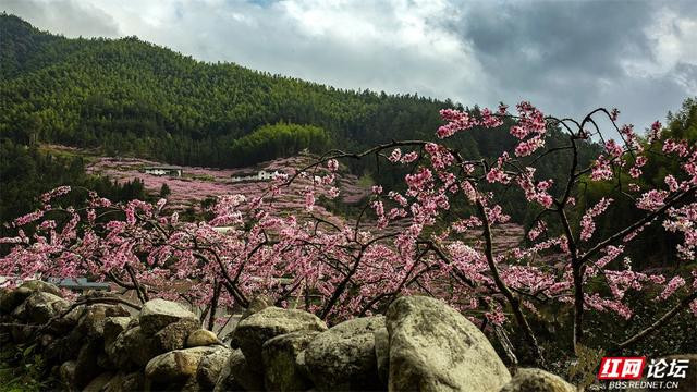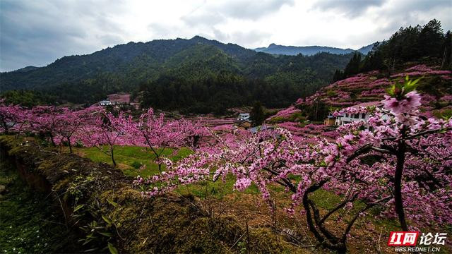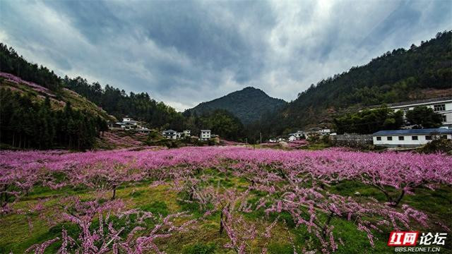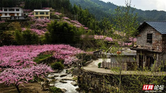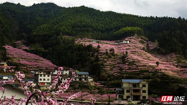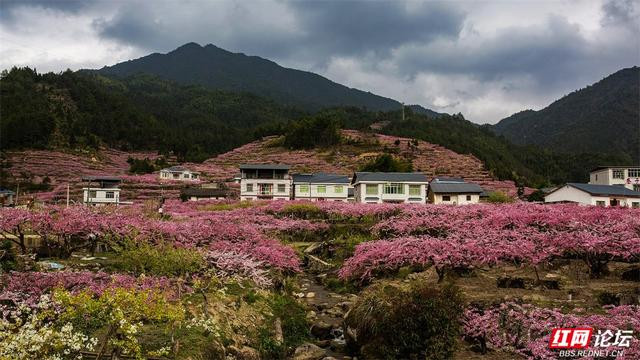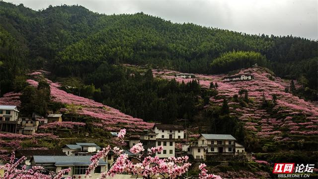 漫天遍野的桃花如粉色云霞,从山脚一直彭胀到山谷深处。一树树、一簇簇,缀满枝端,在青山的衬托下相当明艳动东谈主。梯田层叠,花影摇曳,kaiyun体育几处白墙灰瓦的民居静立其间,偶有溪水穿林而过,北京pk10潺潺水声更添几分乡野的宁静。