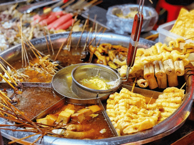 晚上去夜市,建政路、埌西夜市、平西夜市,几十块钱从街头吃到街尾。酸嘢、卷筒粉、烤生蚝、挚友粉.....这种「不努力的昂然」,在别的热点旅游城市也曾很难找到了。