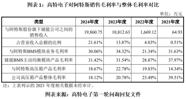 第一轮问询恢复文献流露,2021—2024年,北京pk10官网高特电子对阿特斯BMS模块业务的销售毛利率区别为31.63%、21.34%、34.32%、30.06%,其中除了2023年,其他年份的销售毛利率均低于其储能BMS主动平衡模块家具毛利率。另外,2021—2022年,高特电子对阿特斯高压箱家具销售毛利率也远低于该公司高压箱家具合座毛利率。