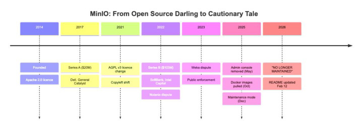 [2]How MinIO went from open source darling to cautionary tale:https://news.reading.sh/2026/02/14/how-minio-went-from-open-source-darling-to-cautionary-tale/