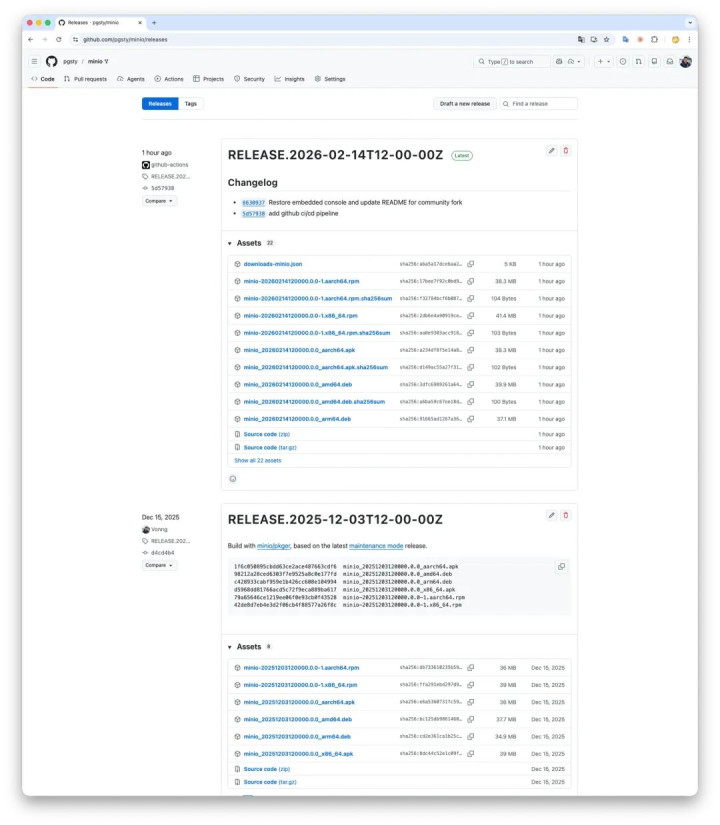 [4]GitHub Release:https://github.com/pgsty/minio/releases/tag/RELEASE.2026-02-14T12-00-00Z