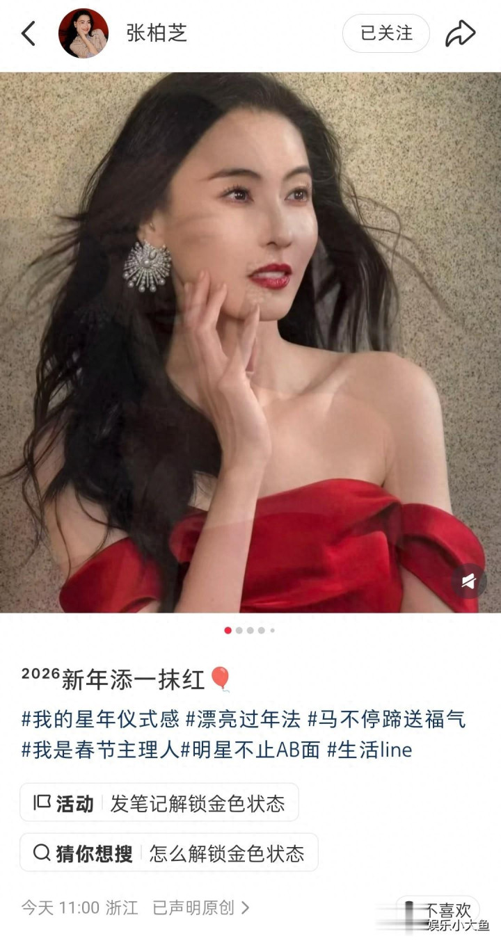 pk10官网 张柏芝共享2026好意思照配文: 新年添一抹红!