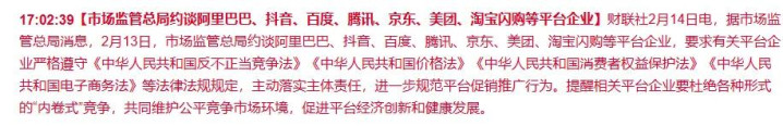 财联社2月14日音讯,2月13日,阿里、抖音、百度、腾讯、京东、好意思团、淘宝闪购,这7个我们每天齐在用的平台,全被官方约谈了。