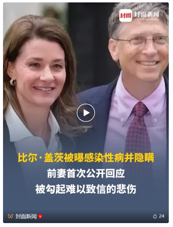 2月4日,据环球网消息,美国司法部1月30日说,当天将公开涉及已故富商杰弗里·爱泼斯坦案的剩余文件,总计超过300万页。据美国媒体报道,文件显示,多名美国政商名流与这一涉嫌性犯罪并离奇死于狱中的富商相识相交,其中就包括美国微软公司创始人比尔·盖茨。据美国全国广播公司(NBC)、美国广播公司(ABC)等美媒报道,比尔·盖茨的前妻梅琳达·盖茨在此事后首度发声。