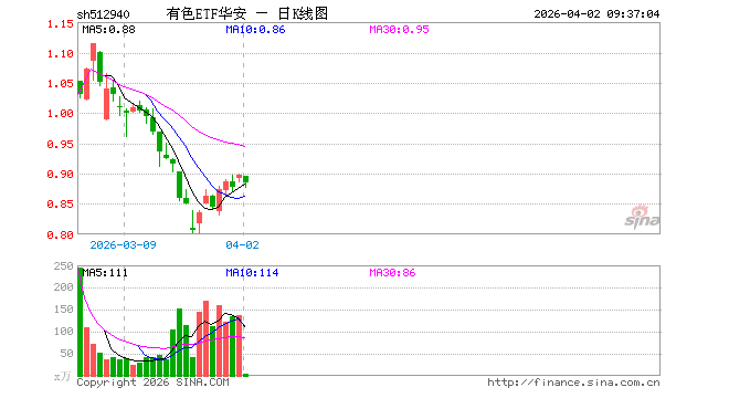 4月2日,有色ETF华安(512940)开盘跌0.11%,报0.896元。有色ETF华安(512940)重仓股方面,紫金矿业开盘跌0.47%,洛阳钼业跌0.66%,kaiyun体育朔方稀土跌0.99%,华友钴业跌0.83%,中国铝业涨1.64%,中金黄金跌0.99%,pk10山东黄金跌1.05%,赣锋锂业跌0.01%,兴业银锡跌1.78%,厦门钨业跌1.79%。