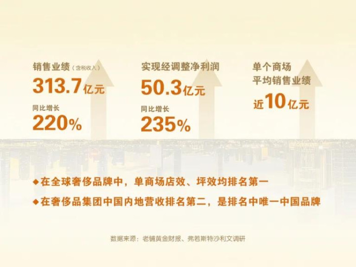 然而这绝非东谈主们常见的低质竞争旧把戏,老铺遥远斥地在高质地增长的基础上。在更能反应末端运营质地的想法上,老铺的上风颇为显赫,弗若斯特沙利文数据自大,不管是单阛阓销售界限,照旧坪效泄露,老铺均位列中国内地市场第一。