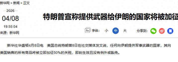 《特朗普威胁向伊朗供武国关税中方回复》、北京后生报