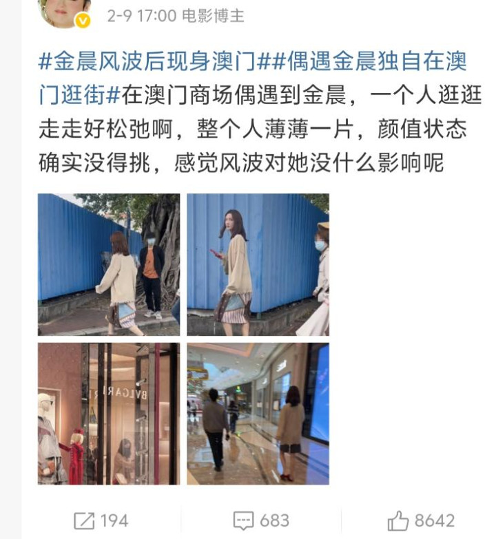 在她被通报后不久,就有网友放出她淡定现身澳门街头的动态。