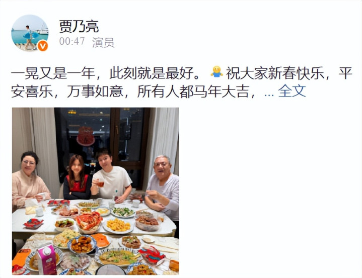 在2月16日,贾乃亮晒出一家四口的全家福,大除夕沿途吃除夕饭,男儿甜馨在场,环球笑貌都好甜啊!贾乃亮和男儿坐在沿途看起来就像个老迈哥,贾姆妈的笑貌如故那么的感染东说念主,倒是没何如变过,反而是贾乃亮的爸爸头发花白老了许多的神气。