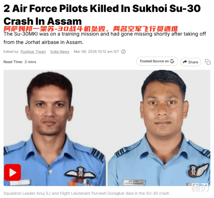 北京pk10官方网站 本年摔的第二架! 印度空军又有一架苏-30坠毁, 两名飞动员遭难