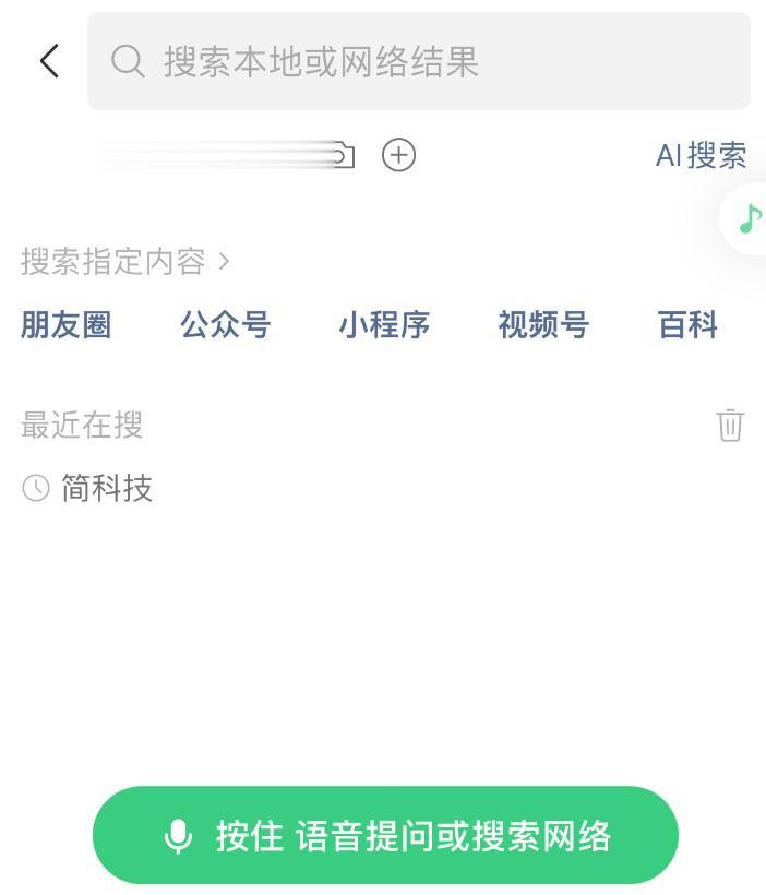 之前有网友发现,在微信聊天列表界面点击顶部的搜索框,那么键盘上方多了一个「按住语音发问或网罗搜索」的按钮,用户可按住后径直话语发问或搜索。