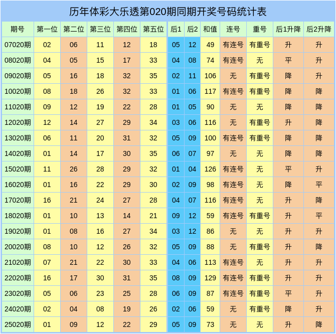 潘超大乐透积年同时奖号数据分析