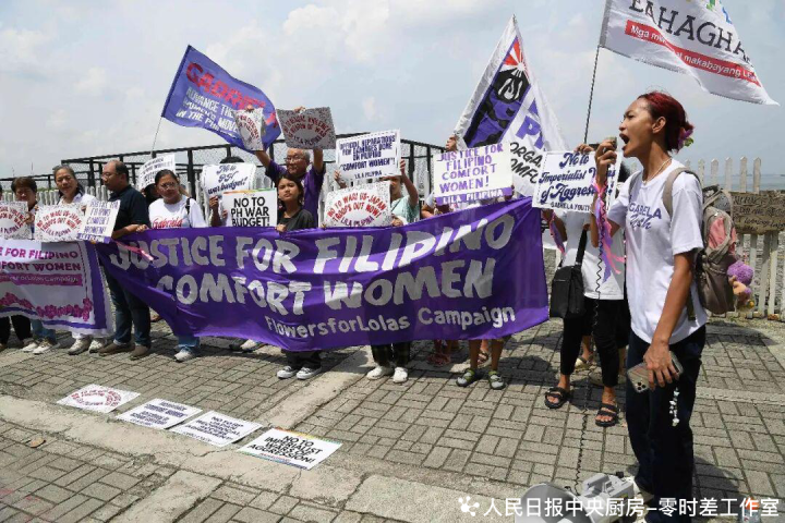 菲律宾各人在皆门马尼拉一尊“慰安妇”雕像原址隔邻举行二战截止80年牵挂行径。泰德·阿尔希贝摄(影像中国)