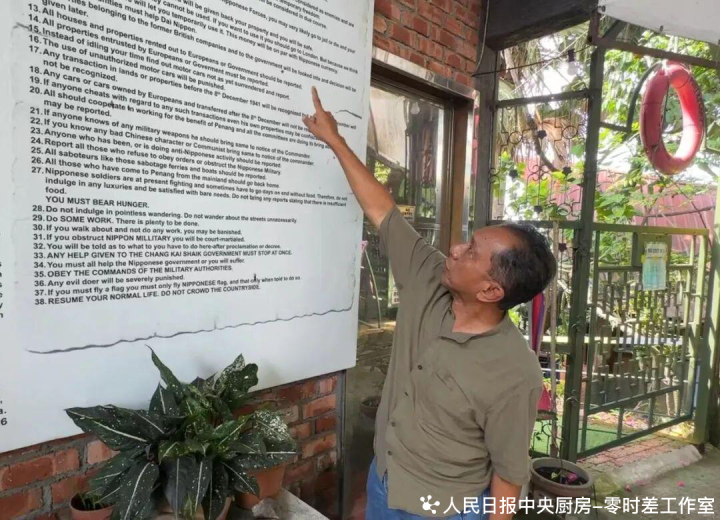 马来西亚槟城来回博物馆创建者佐哈里在展板前先容日军占领槟城后发布的“38项严令”。东谈主民日报记者白元琪摄