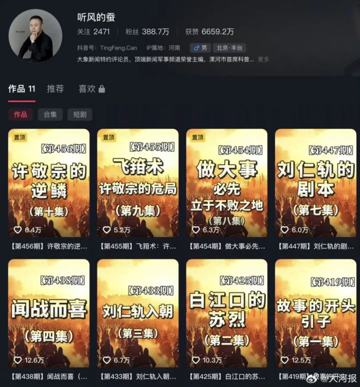 北京pk10 军事博主"听风的蚕"单日掉粉千万,平台回应