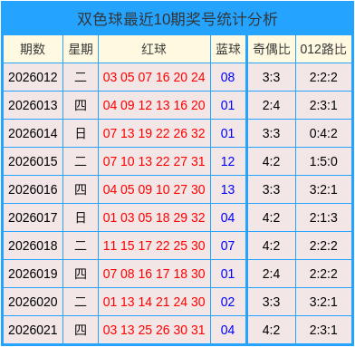 开奖讲究:第2026021期双色球开奖号码为:03、13、25、26、30、31+04。奇偶比为4:2,012路比为2:3:1。