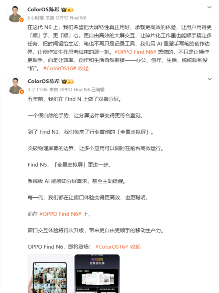 另外OPPO Find N6还配备了AI手写笔,接洽莱茵认证最平整折叠,手写体验会有以往折叠莫得的体验!此外,据陈希泄露还会有全新的窗口交互体验,先期待一波!