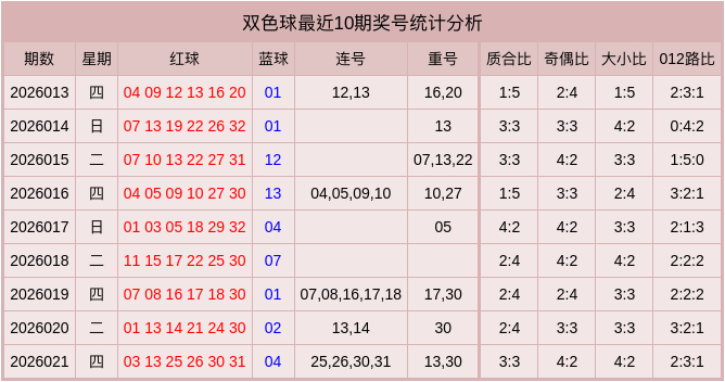 开奖追思:福彩双色球第2026021期奖号为:03、13、25、26、30、31 + 04;