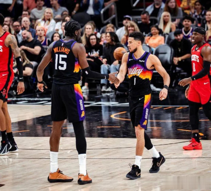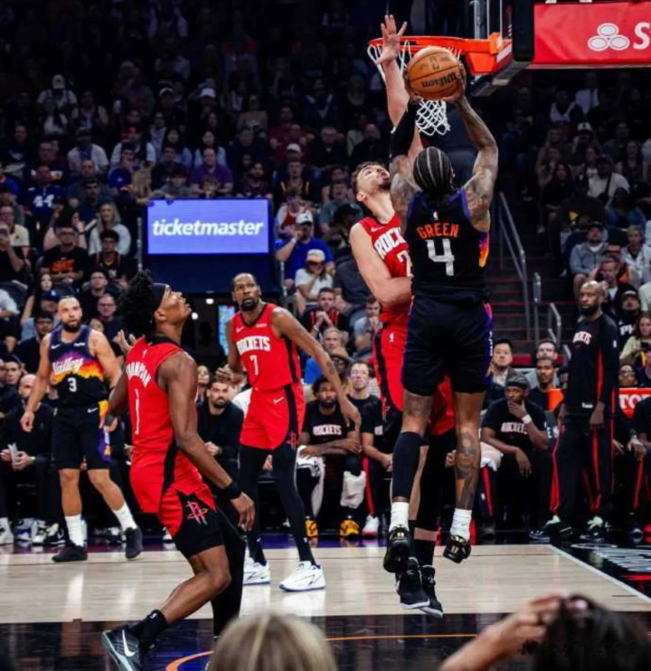 第四节申京终于开张,篮下连打三个,阿门空切暴扣、助攻霍勒迪、再我方上篮,一波8比0告成反超。小史姑娘造狄龙三分犯规,三罚全中,杜兰特底角三分再中,111比96,比赛基本没了悬念。临了太阳连追5分也只让分差缩到10分,火箭稳稳控住。