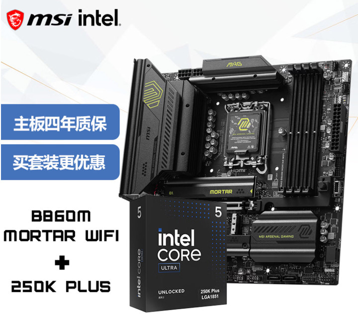 许多妹子装机怕艰巨,更怕配件不兼容、性能铺张,这套英特尔(intel)Ultra5 250K PLUS处理器和微星MAG B860M MORTAR WIFI迫击炮主板的套装,齐全经管总计痛点。